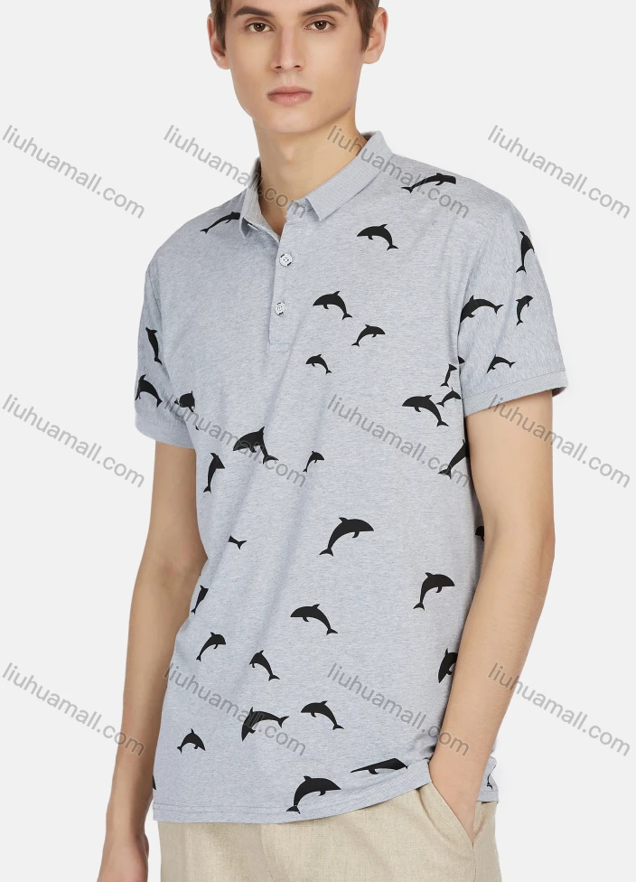 Wholesale Men's Casual Short Sleeve Dolphin Print Button Front Polo Shirts
