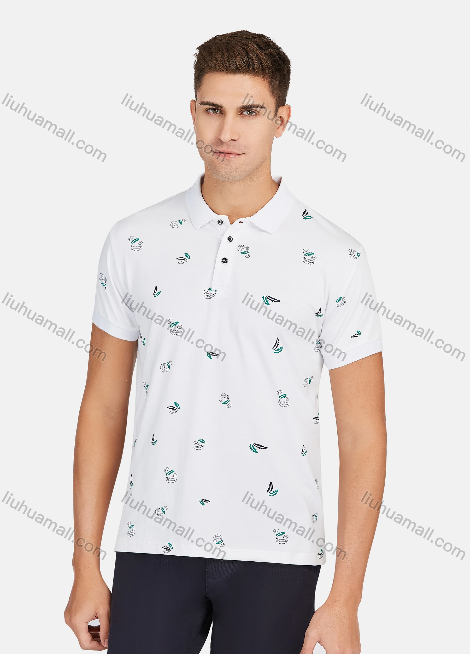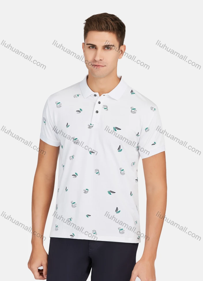 Wholesale Men's Casual Short Sleeve Feather Print Button Front Polo Shirts - Liuhuamall