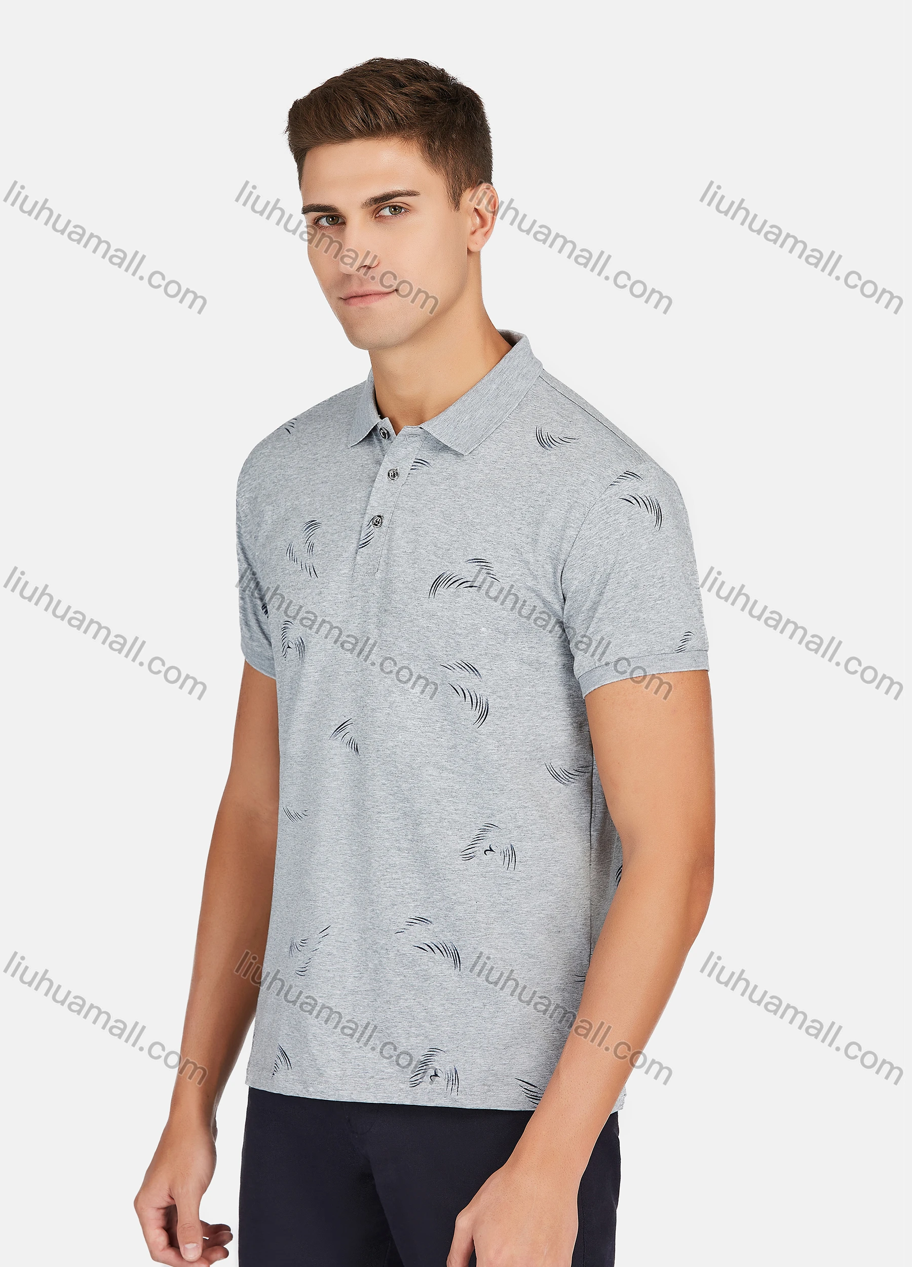 Wholesale Men's Casual Short Sleeve Feather Print Button Front Polo Shirts