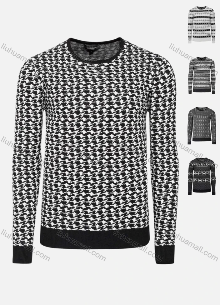 Wholesale Men's Casual Slim Fit Crew Neck Folk Art Knit Wool Blend Sweater 8360/8361/8362/8363/8365#