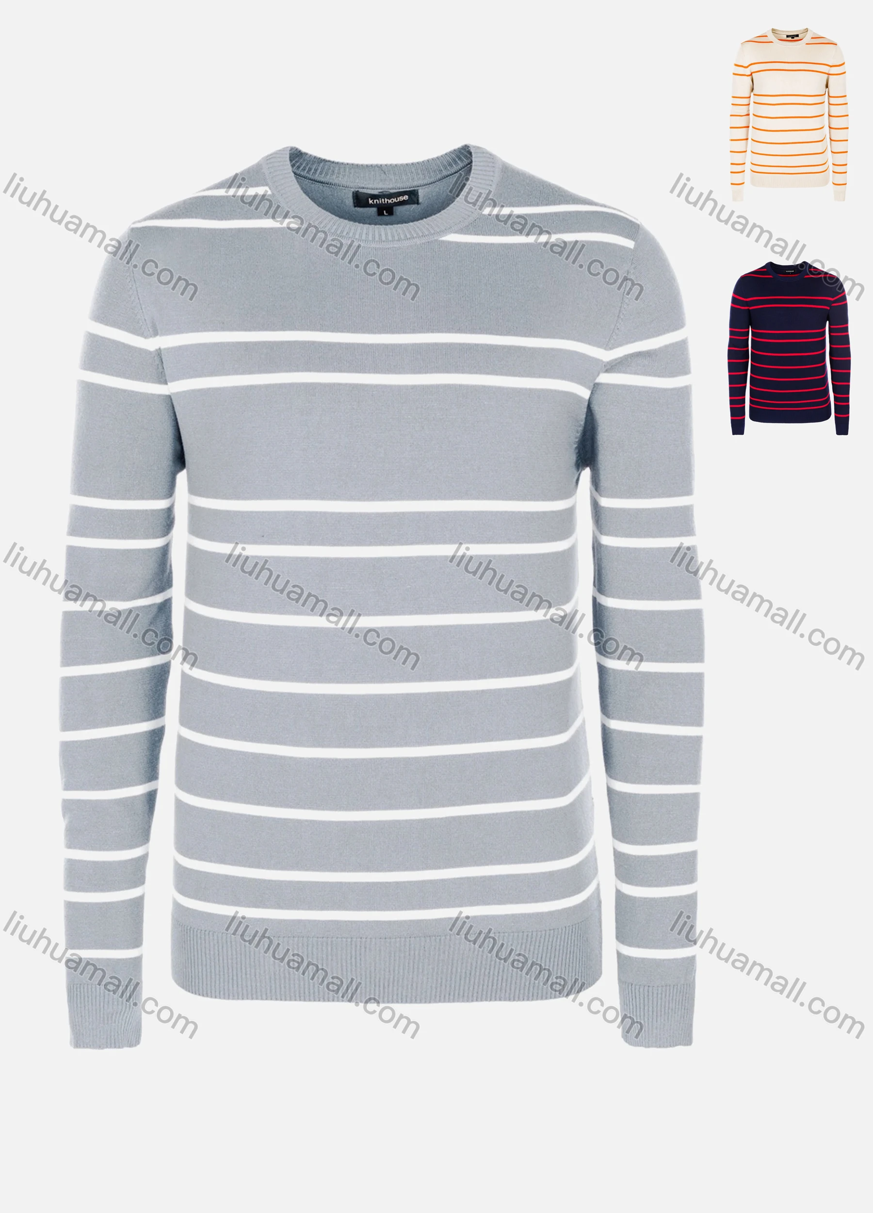 Wholesale Men's Casual Slim Fit Crew Neck Long Sleeve Striped Knit Sweater 8310#