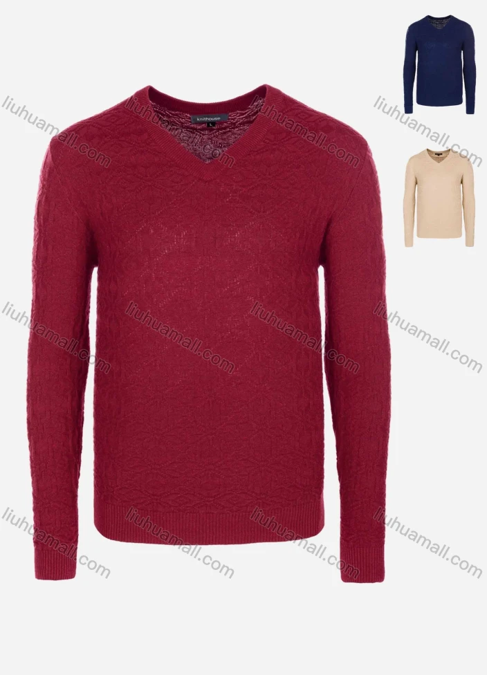 Wholesale Men's Casual Slim Fit V Neck Long Sleeve Plain Knit Wool Blend Sweater 8908#