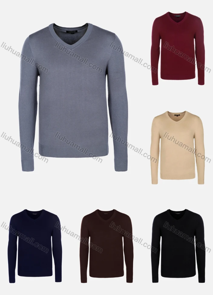 Wholesale Men's Casual Slim Fit V Neck Long Sleeve Plain Sweater 8301#