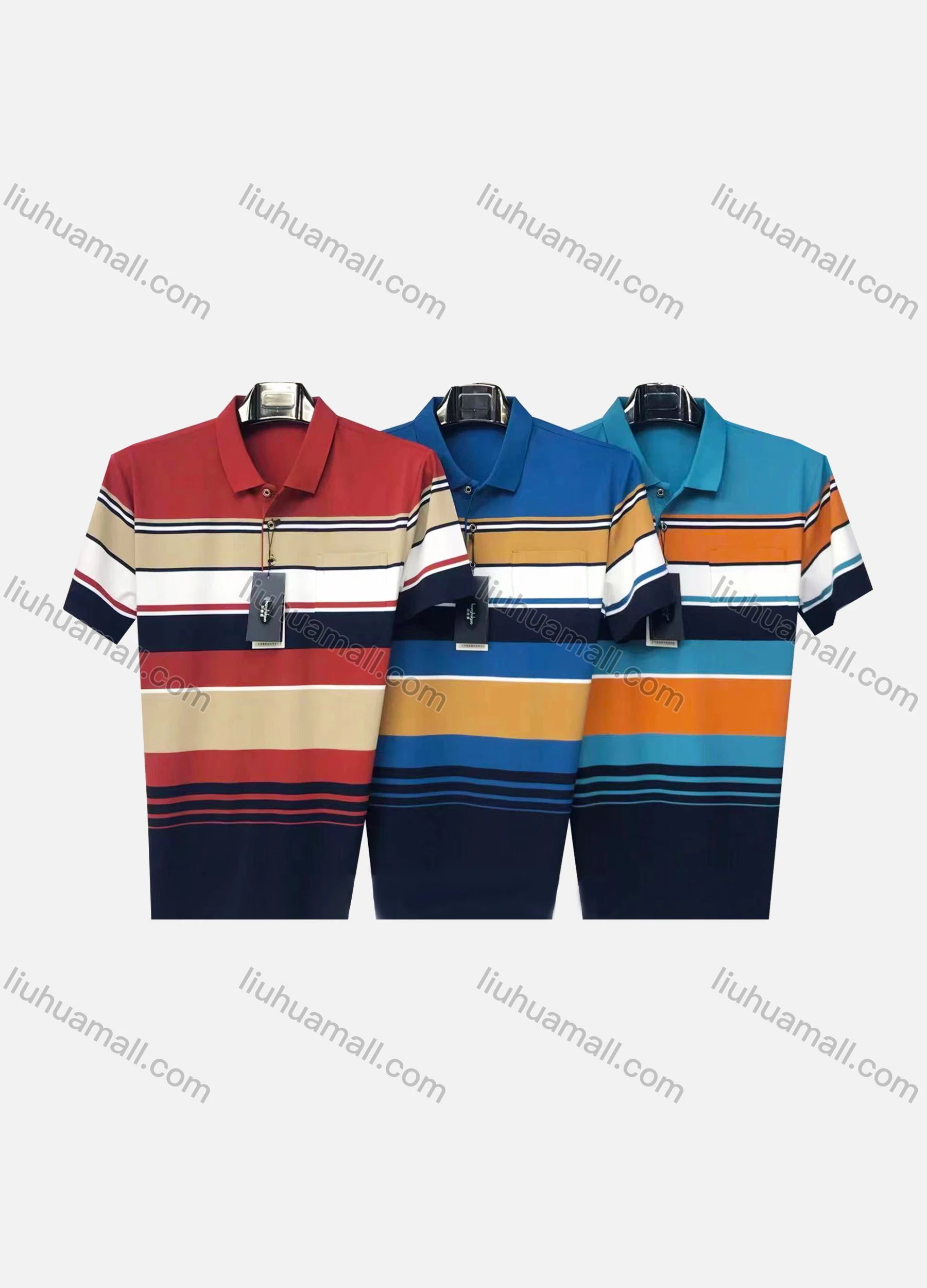 Wholesale Men's Casual Striped Colorblock Patch Pocket Short Sleeve Polo Shirt 301#