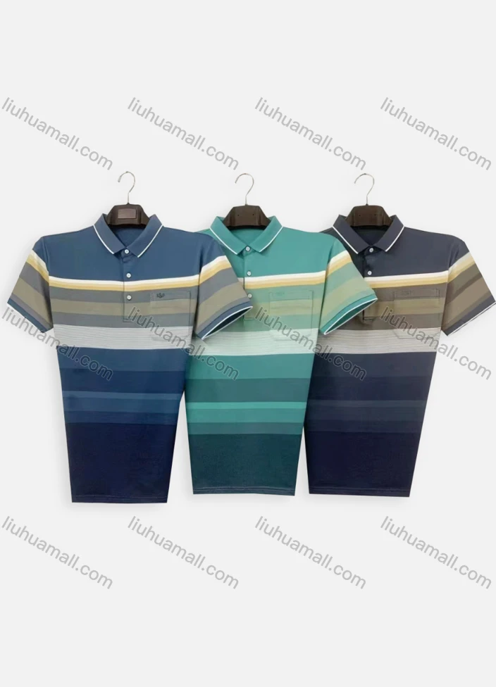 Wholesale Men's Casual Striped Colorblock Short Sleeve Patch Pocket Polo Shirt H109#