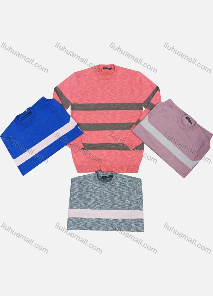 Wholesale Men's Casual Striped Round Neck Long Sleeve Sweater