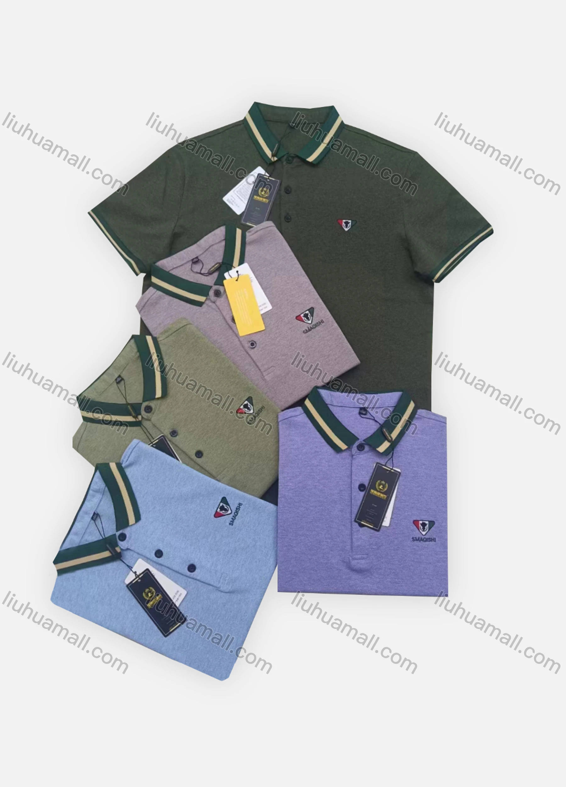 Wholesale Men's Casual Striped Trim Plain Label Print Short Sleeve Polo Shirt A2316#