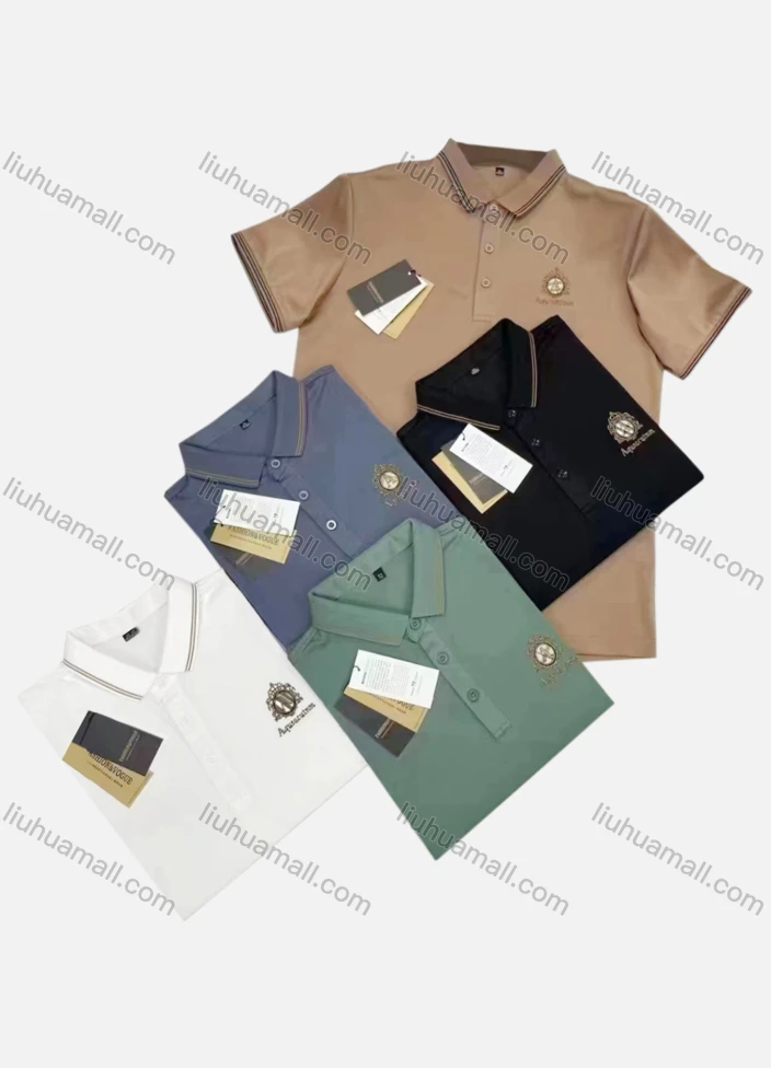 Wholesale Men's Casual Striped Trim Plain Label Print Short Sleeve Polo Shirt - Liuhuamall