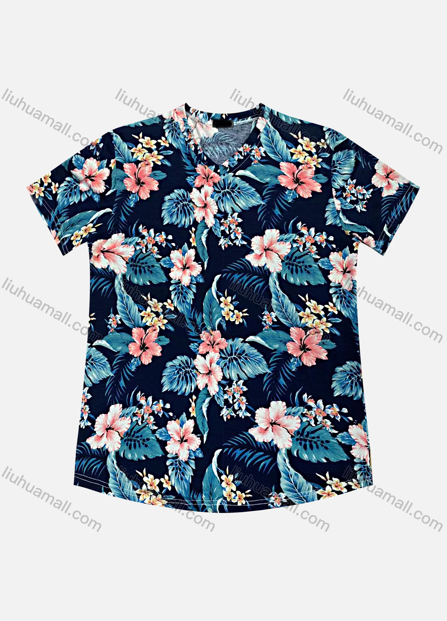 Wholesale Men's Casual V Neck Short Sleeve Floral Print T-Shirt