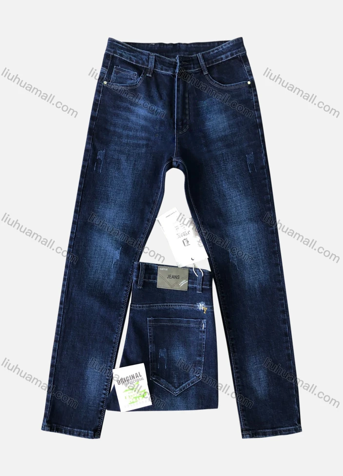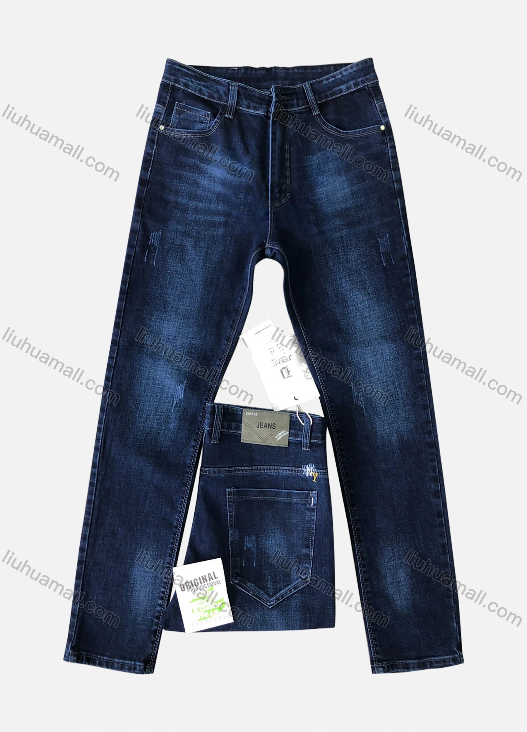 Wholesale Men's Casual Zipper Button Pockets Embroidered Letter Plain Thick High Stretch Jean 96002#