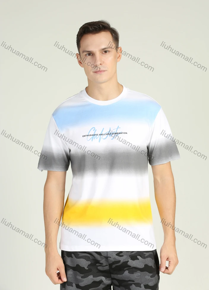 Wholesale Men's Colorblock Short Sleeve Round Neck Letter Print T Shirt