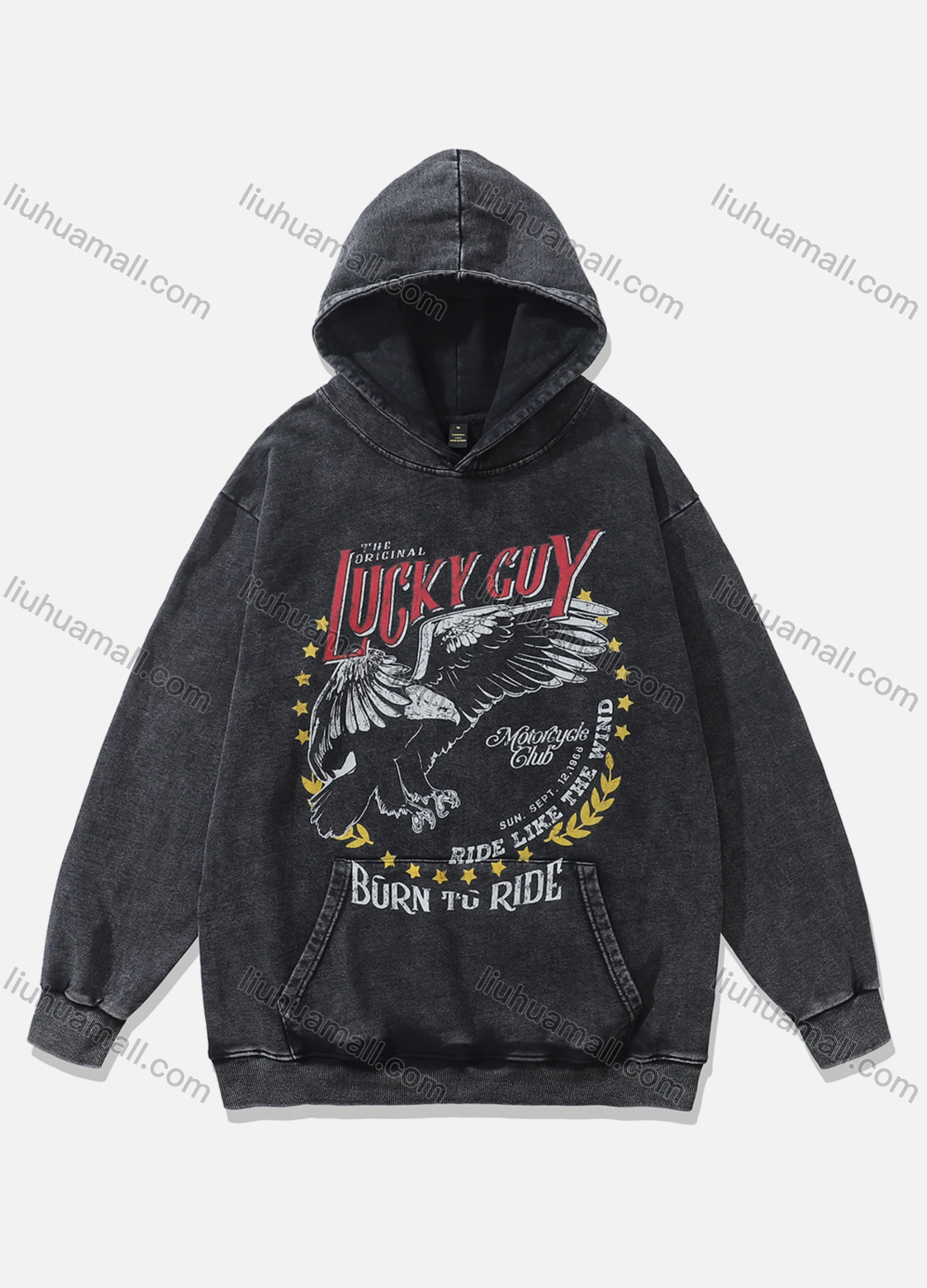 Wholesale Men's Fashion 100%Cotton Graphic Distressed Long Sleeve Hoodie Pullover Sweatshirt SML26#
