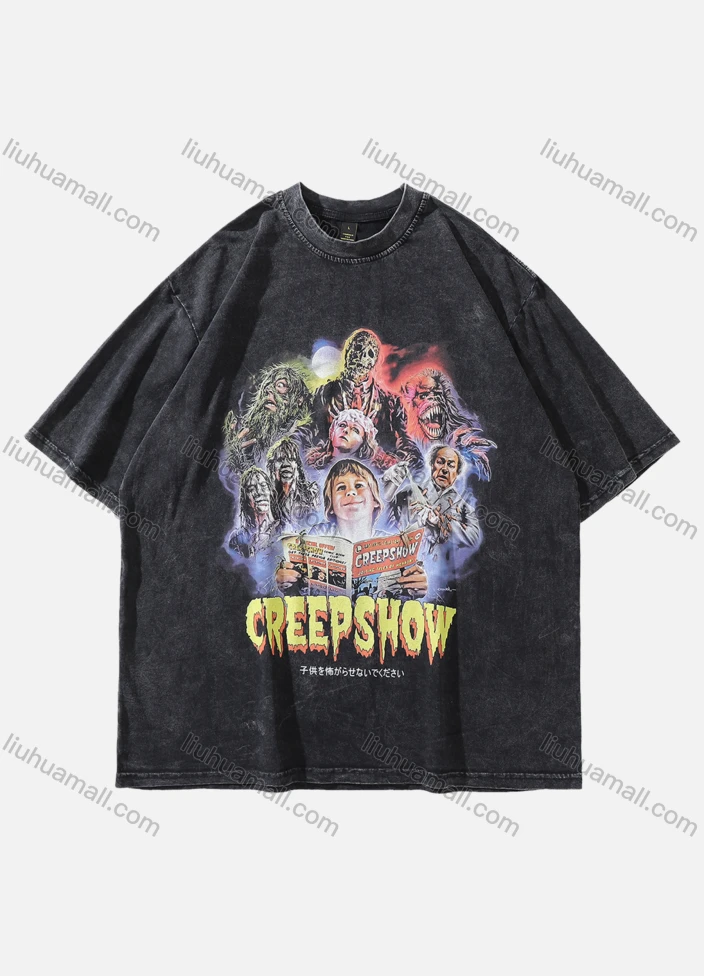 Wholesale Men's Fashion Hip Hop Oversized Crew Neck Short Sleeve Wash Distressed Graphic T-shirt 782#