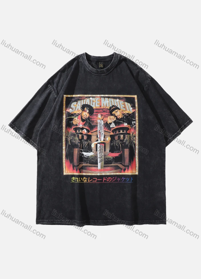 Wholesale Men's Fashion Hip Hop Oversized Crew Neck Short Sleeve Wash Distressed Graphic T-shirt 792#