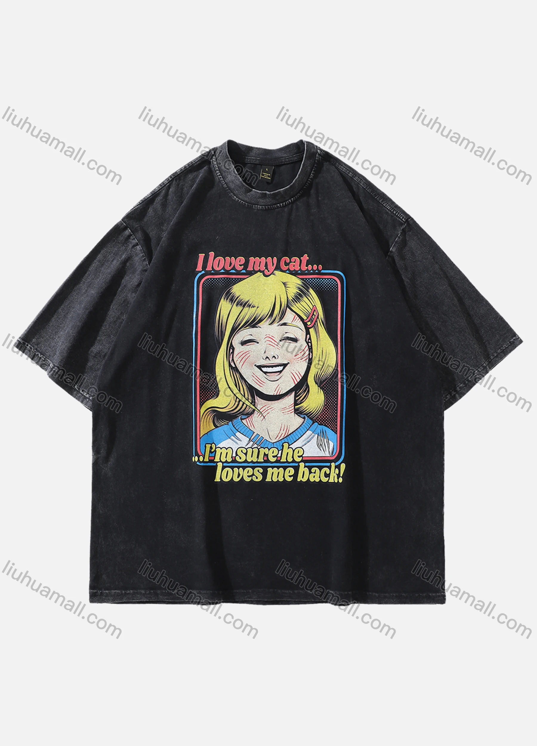 Wholesale Men's Fashion Hip Hop Oversized Crew Neck Short Sleeve Wash Distressed Graphic T-shirt 796#