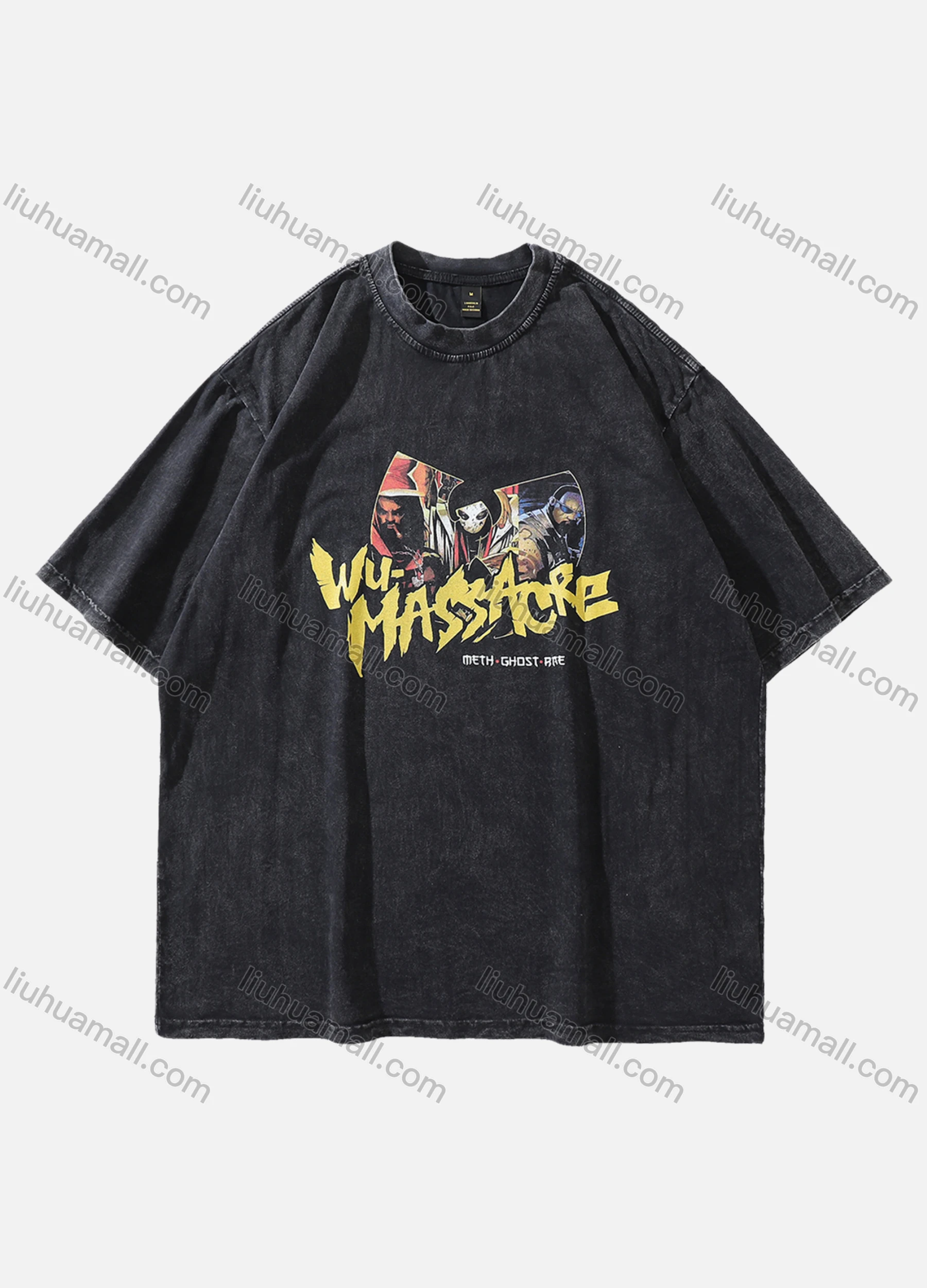 Wholesale Men's Fashion Hip Hop Oversized Crew Neck Short Sleeve Wash Distressed Graphic T-shirt 799#
