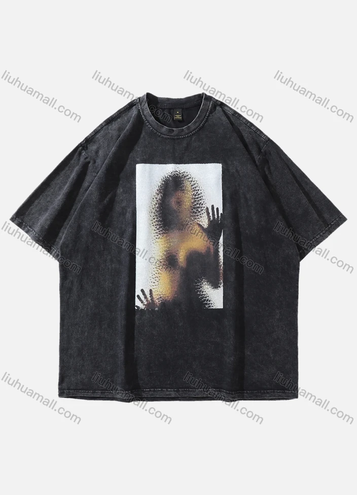 Wholesale Men's Fashion Hip Hop Oversized Crew Neck Short Sleeve Wash Distressed Graphic T-shirt 803#