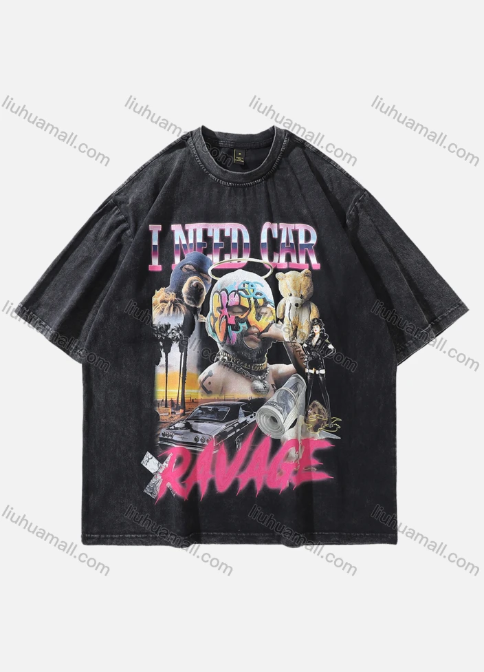 Wholesale Men's Fashion Hip Hop Oversized Crew Neck Short Sleeve Wash Distressed Graphic T-shirt 813#