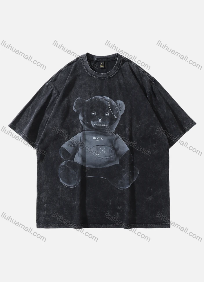 Wholesale Men's Fashion Hip Hop Oversized Crew Neck Short Sleeve Wash Distressed Graphic T-shirt 817#