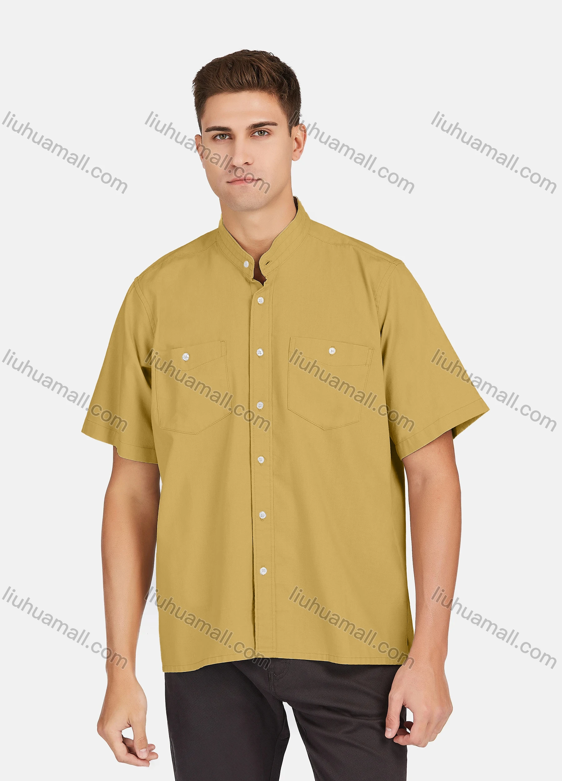 Wholesale Men's Fashion Loose Fit Mandarin Collar Short Sleeve Button Down Shirts