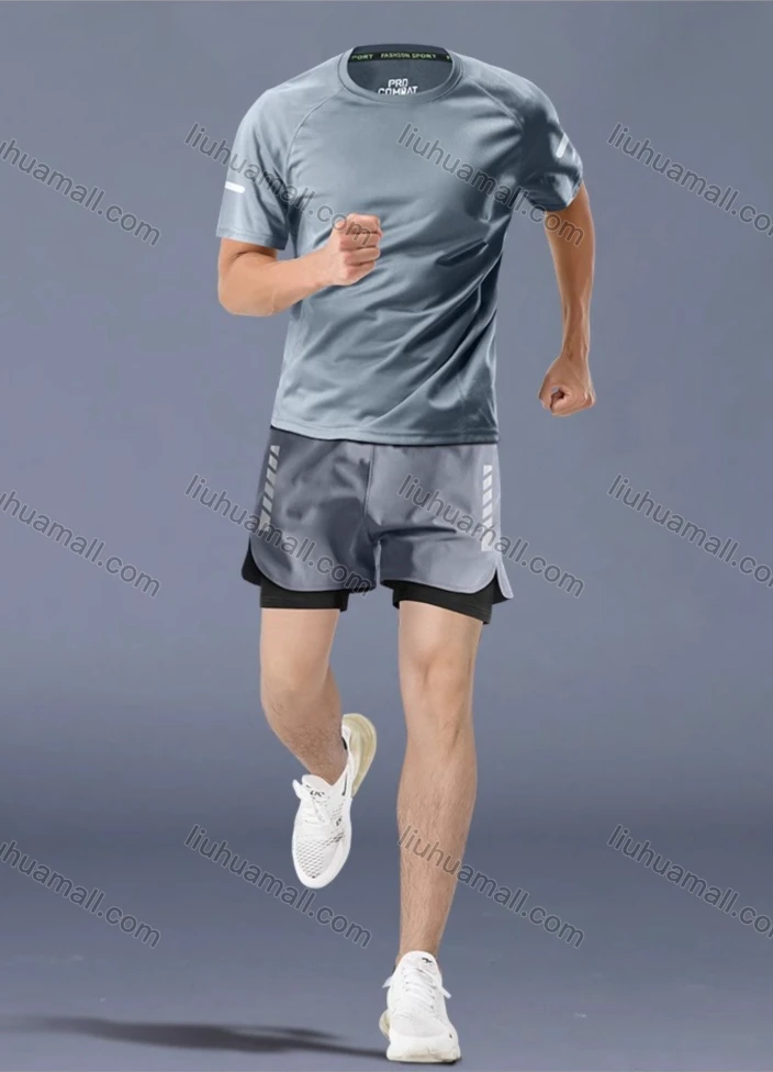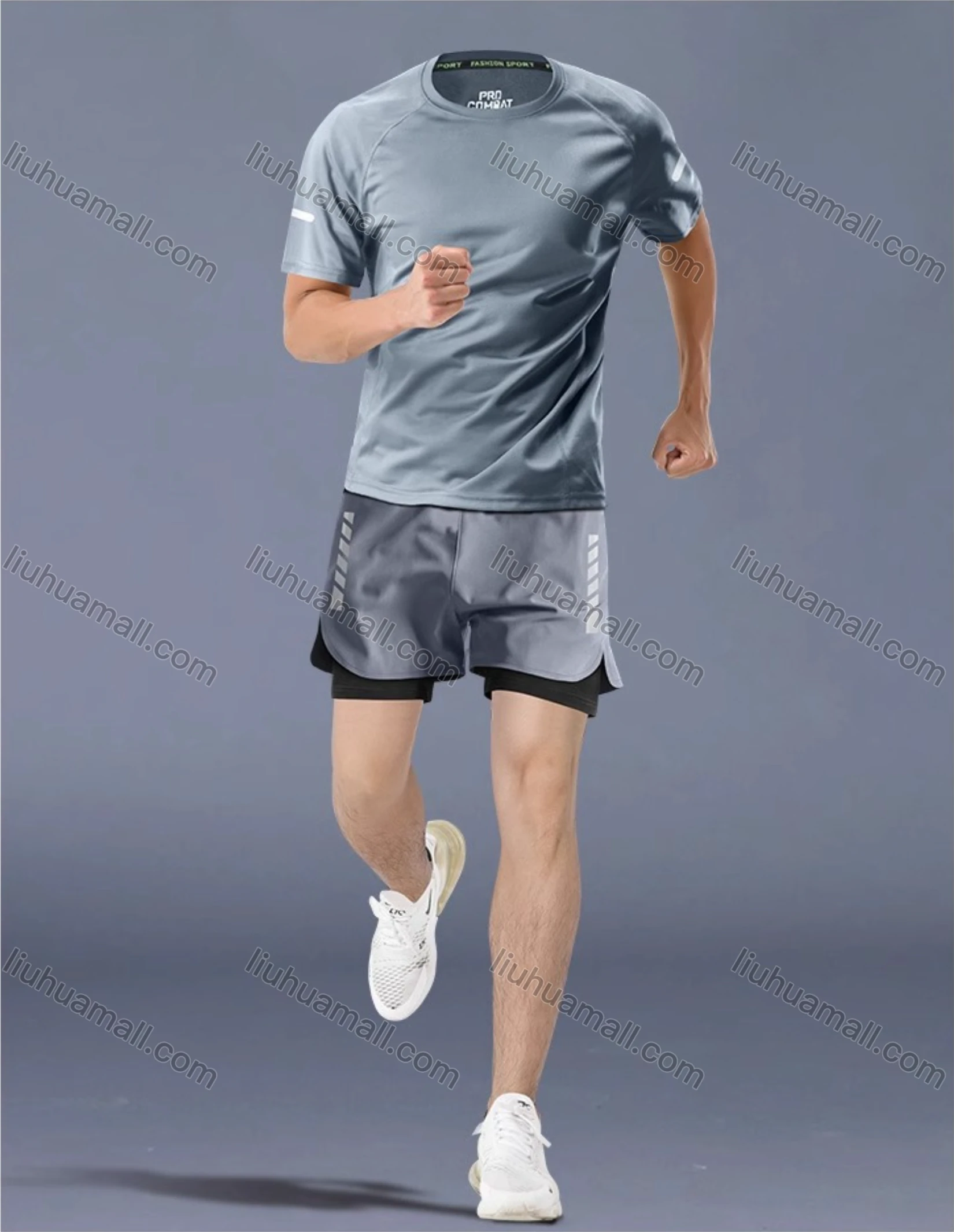 Wholesale Men's Fitness Clothes Marathon Running Training Short Sleeve shirts With Shorts Quick-drying Sports Set