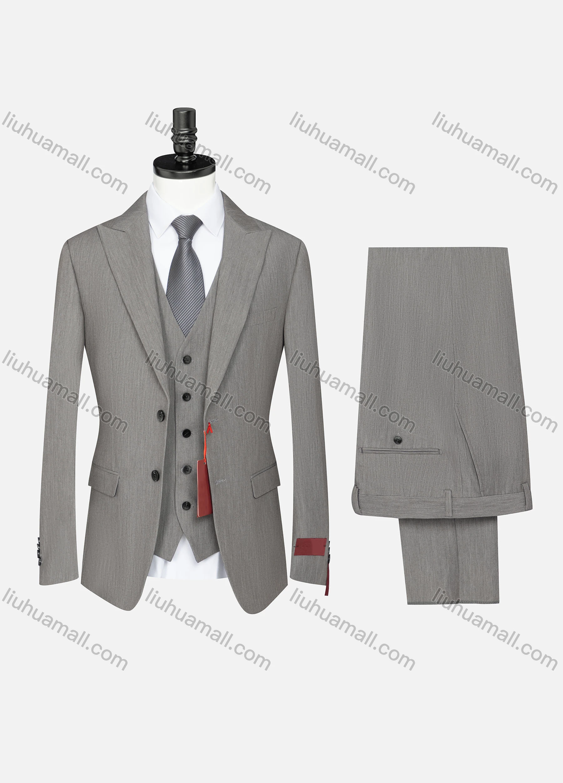 Wholesale Men's Formal Business Lapel Plain Two Button Blazer Jacket & Single Breasted Waistcoat & Pants 3 Piece Suit Set