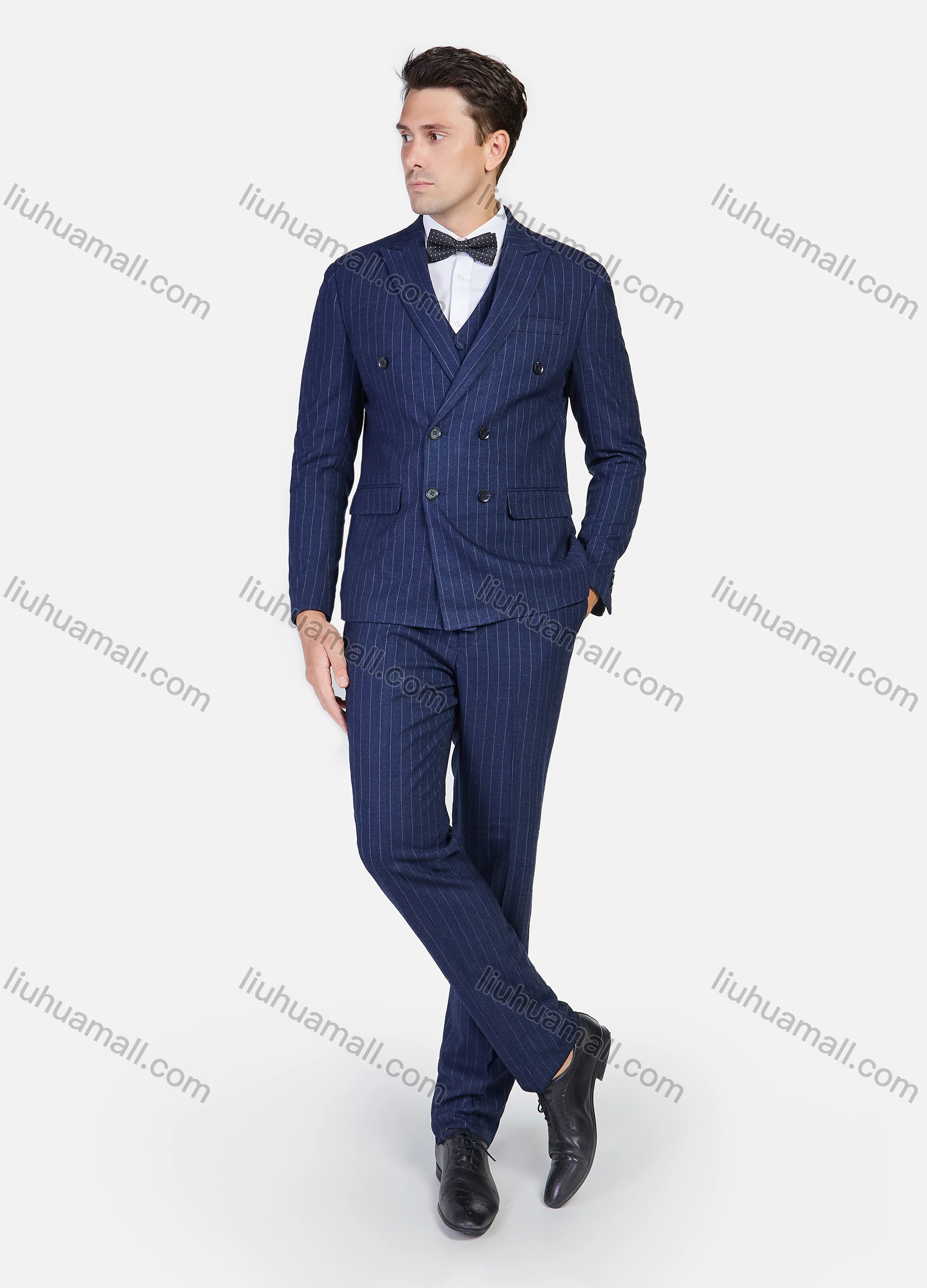 Wholesale Men's Formal Business Striped Print Slim Fit Lapel Double Breasted Suit Jacket With Waistcoat 3 Piece Set