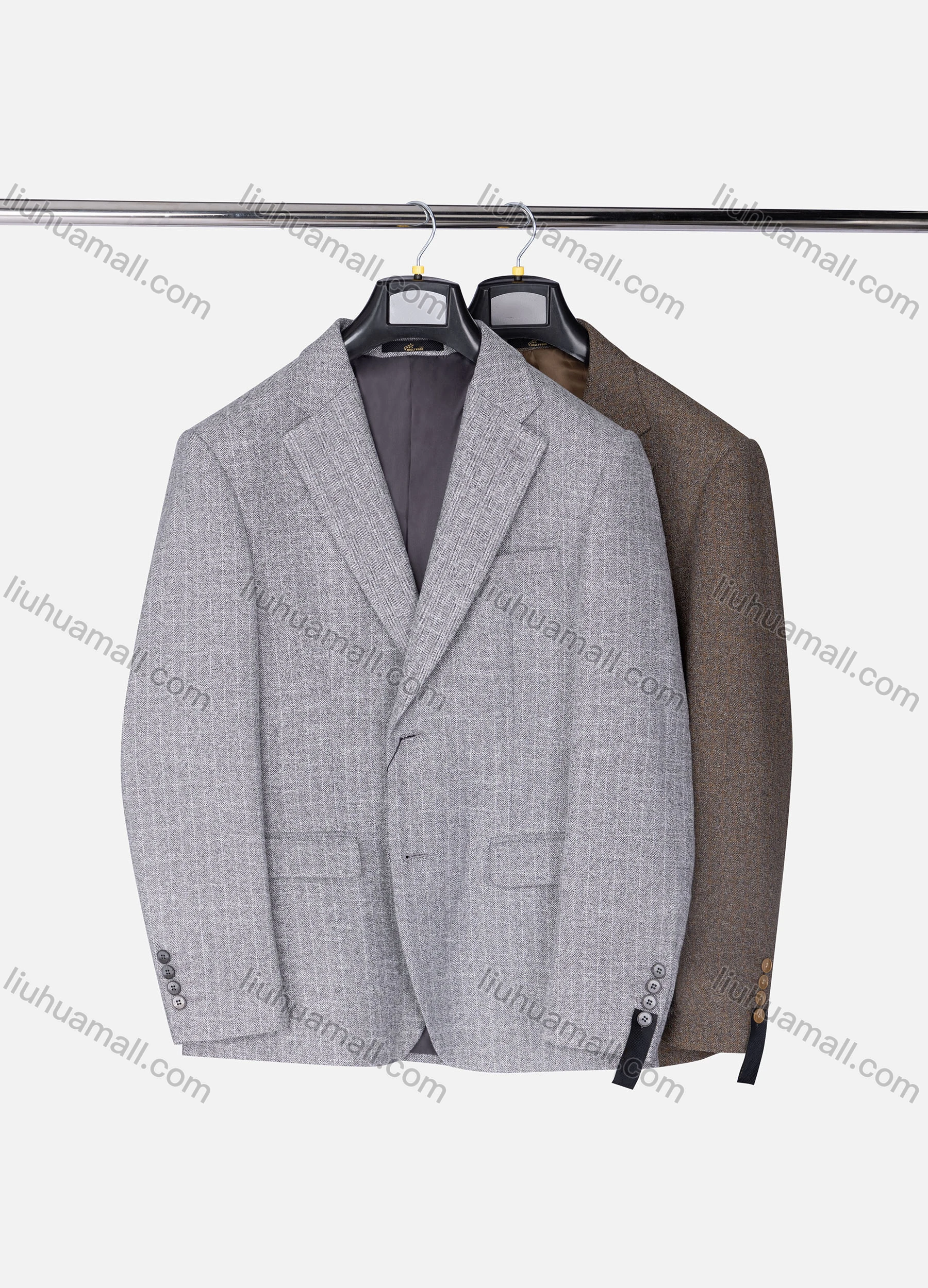Wholesale Men's Formal Lapel Allover Plaid Print Long Sleeve Two Button Blazer Jackets 9125#