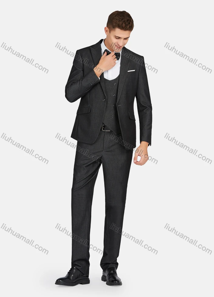 Wholesale Men's Formal Lapel Plain Pockets Blazer & Double Breasted Vest & Pant 3 Pieces Suit Sets