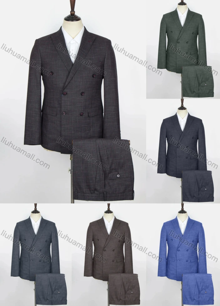 Wholesale Men's Formal Plaid Print Flap Pockets Double Breasted Blazer & Suit Pants 2-Piece Suit Sets OG2205-D2473-27#