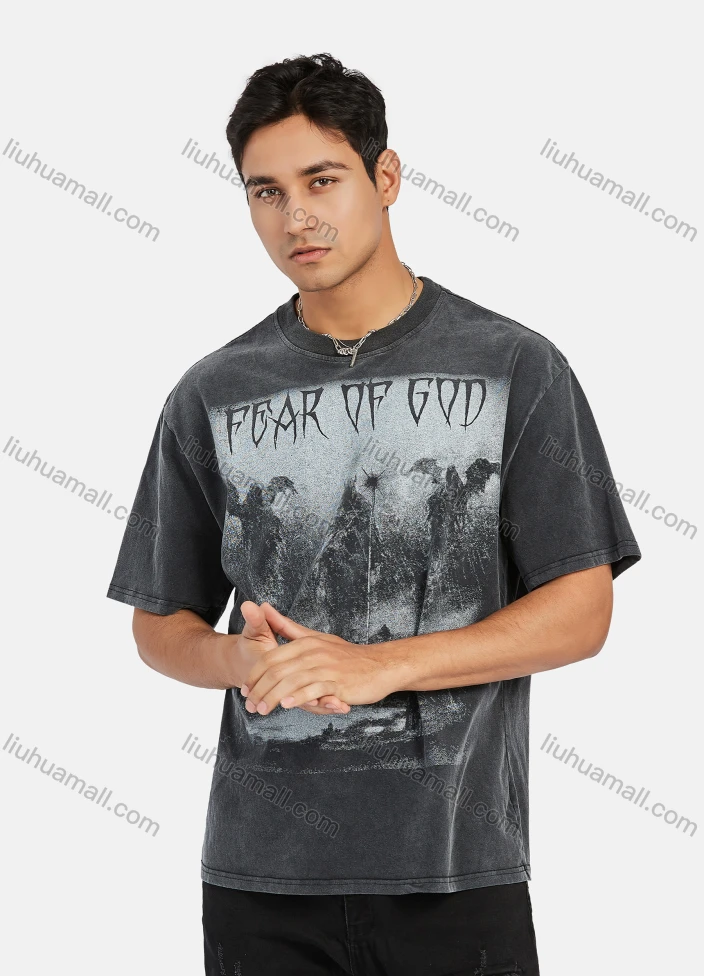 Wholesale Men's Hip Hop Round Neck Loose Fit Short Sleeve Graphic Letter T-shirt 77112#
