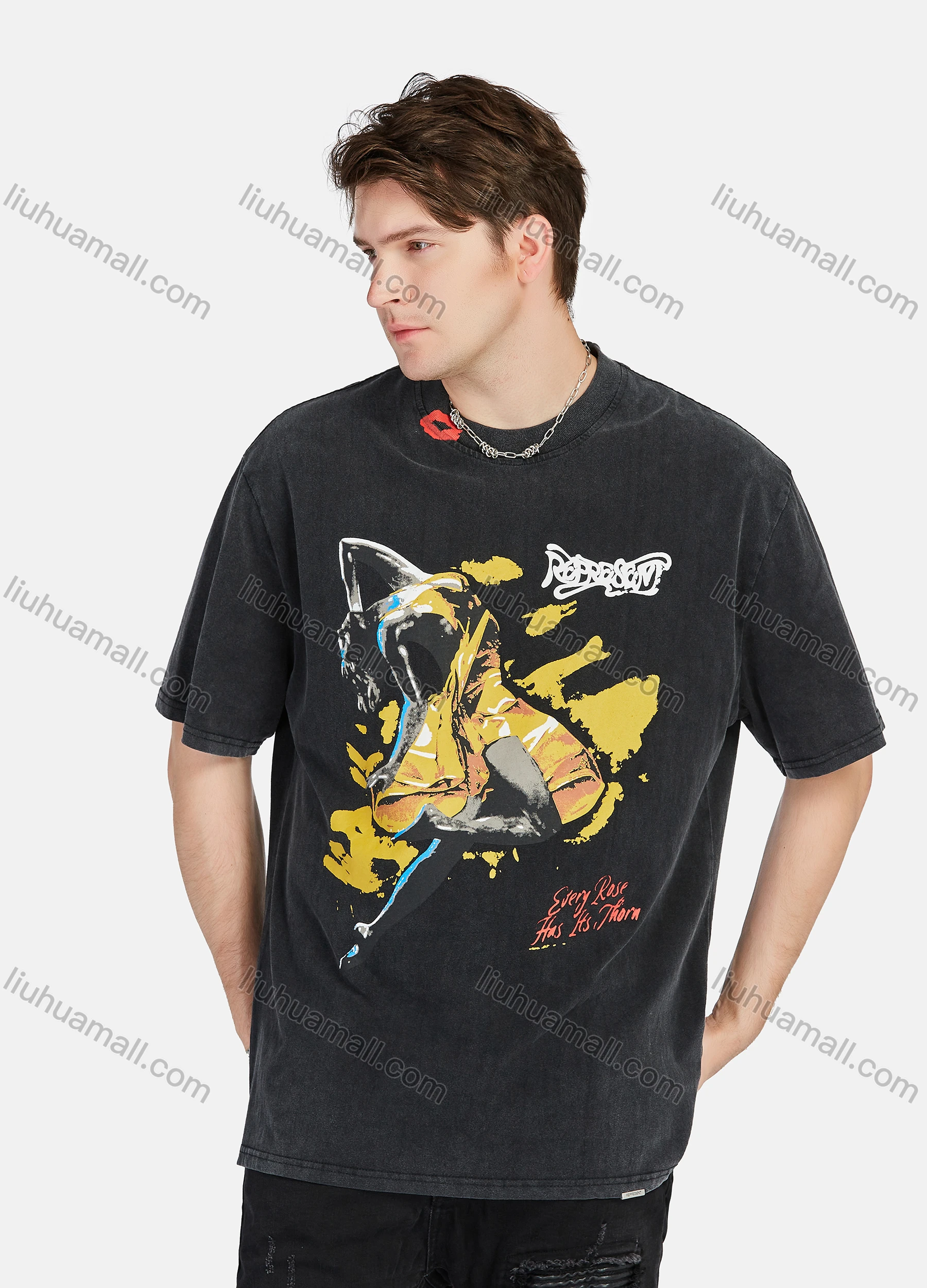 Wholesale Men's Loose Fit Round Neck Short Sleeve Graphic Letter Hip Hop T-shirt