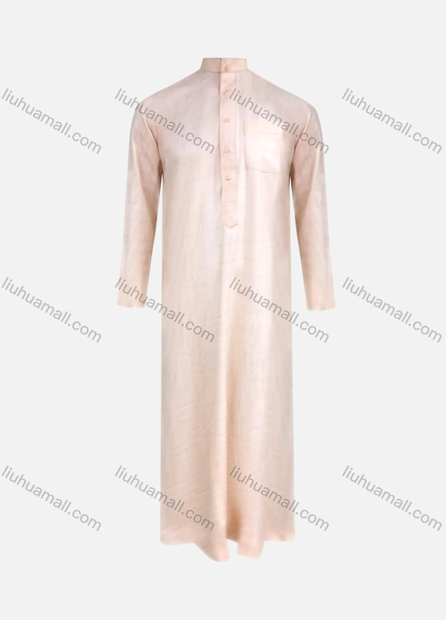 Wholesale Men's Modest Muslim Stand Collar Plain Patch Pocket Button Front Middle East Ramadan Robe