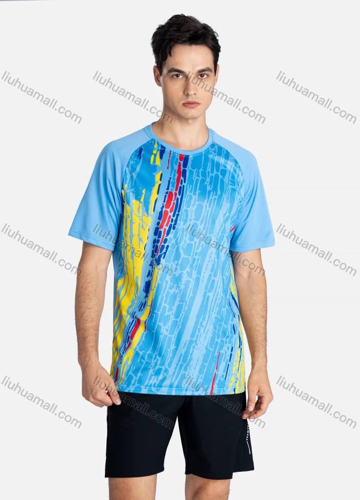 Wholesale Men's Sporty Crew Neck Breathable Allover Print Quick Drying T-shirts - Liuhuamall