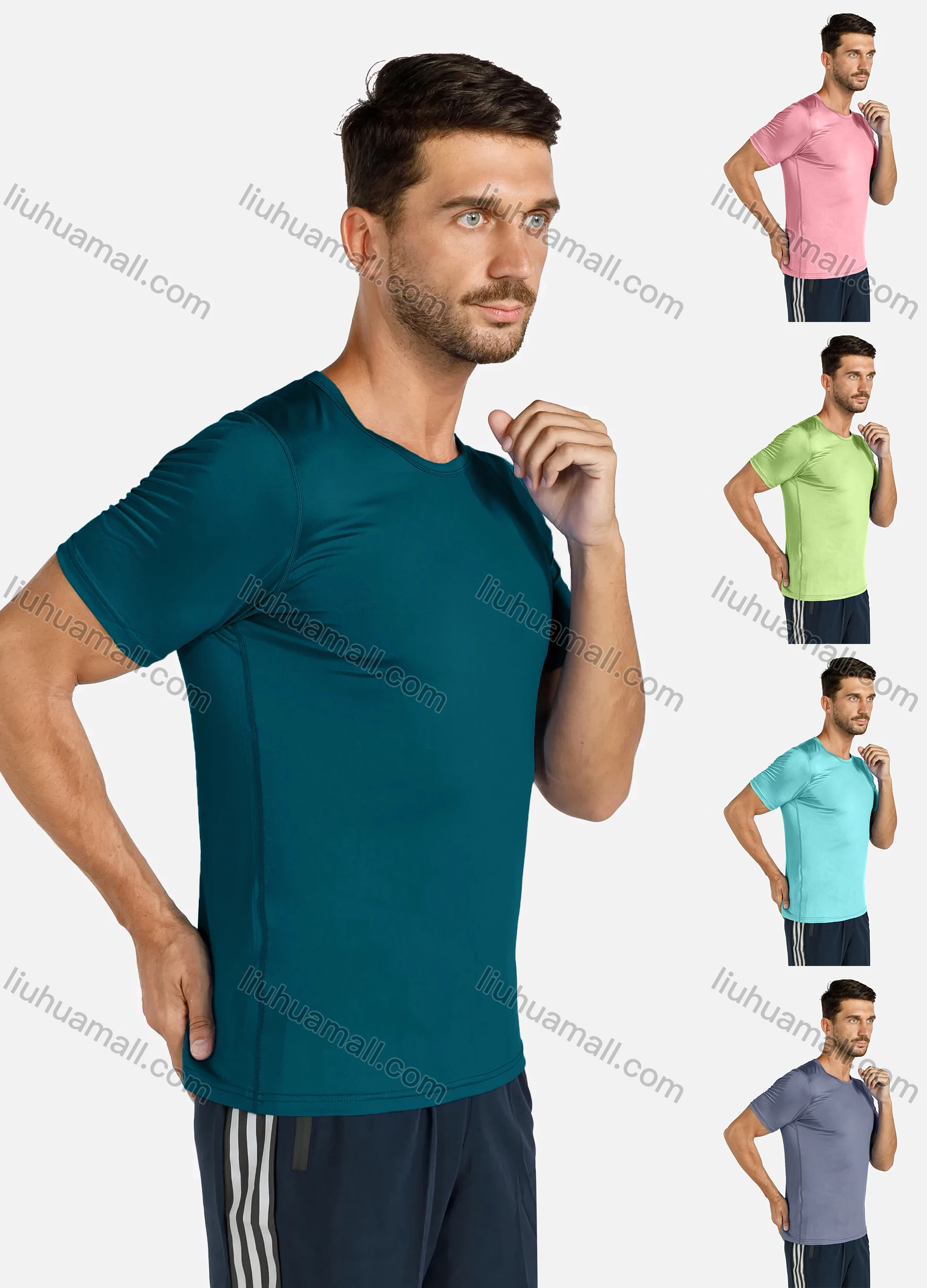 Wholesale Men's Sporty Plain Short Sleeve Round Neck Slim Fit Stretchy Quick Dry T-shirts