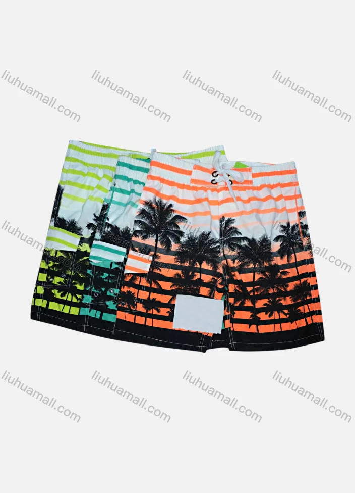 Wholesale Men's Tropical Plants Print Flap Pockets Drawstring Shorts