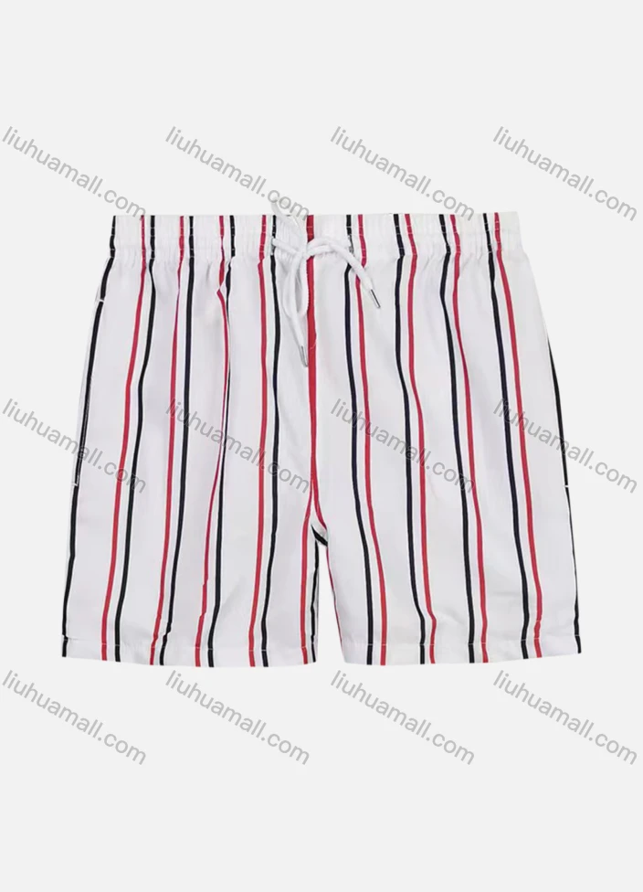 Wholesale Men's Vacation Regular Fit Striped Drawstring Beach Shorts