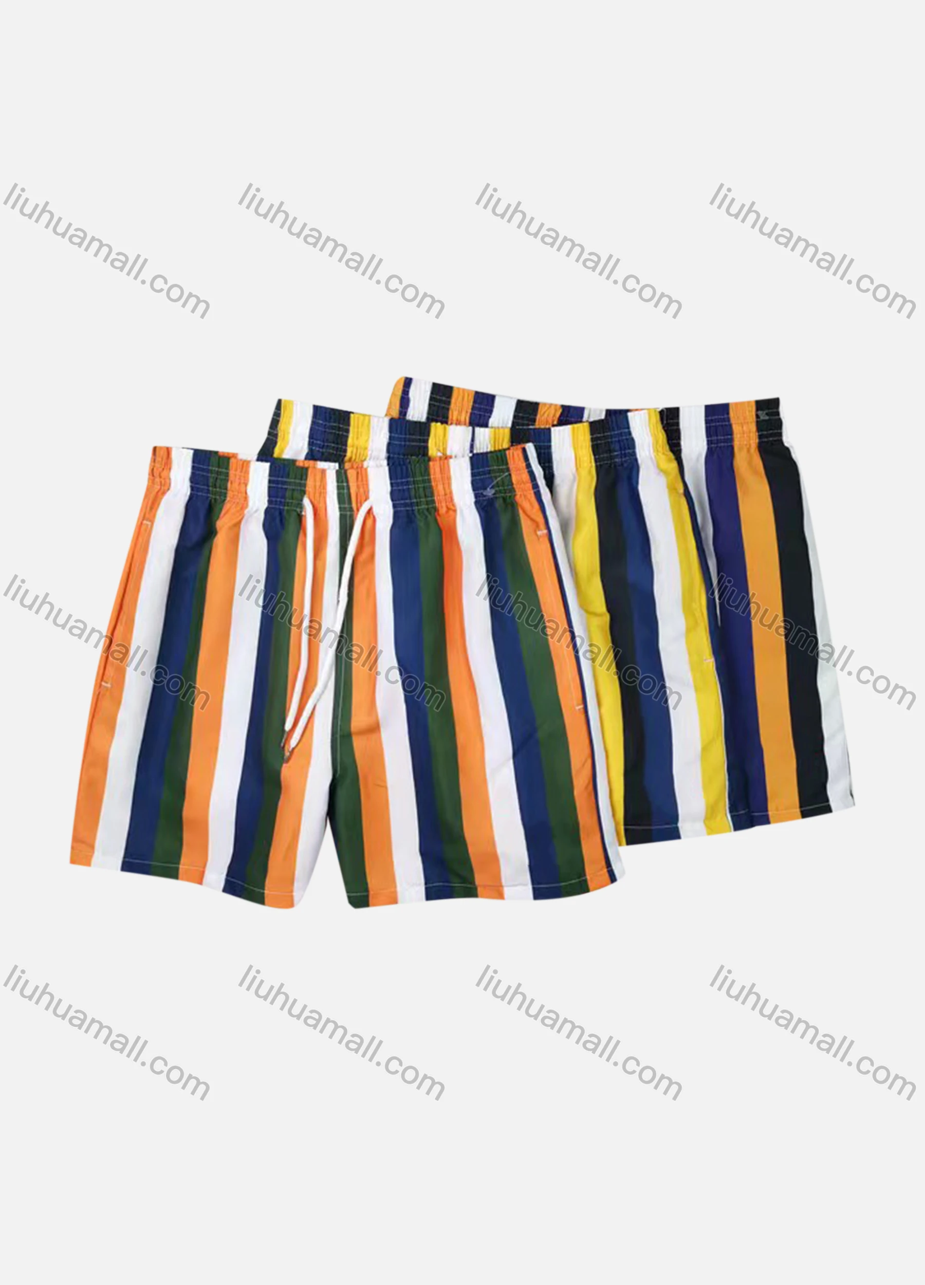 Wholesale Men's Vacation Striped Drawstring Beach Shorts - Liuhuamall