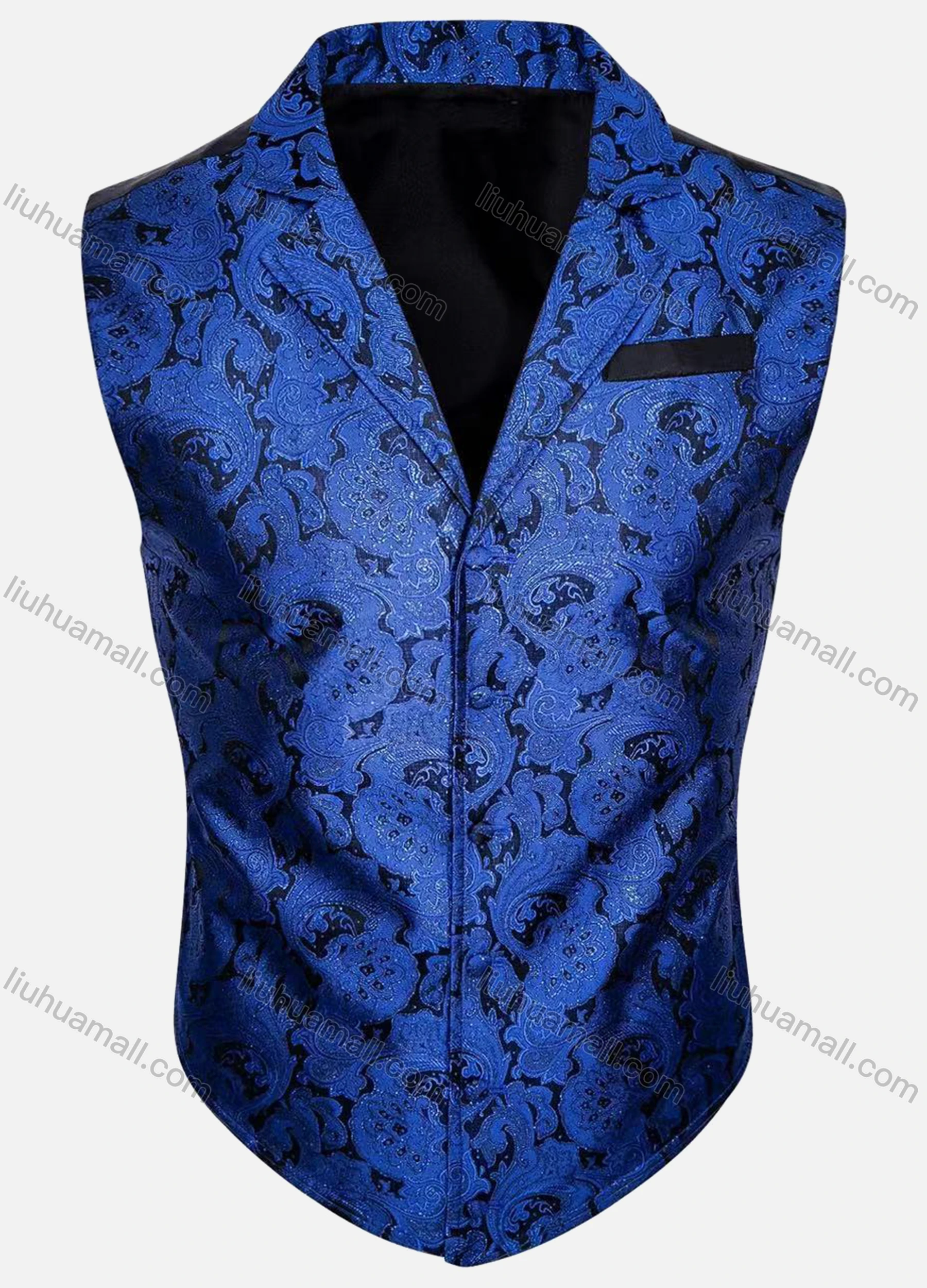 Wholesale Men's Vintage Lapel Embroidered Single Breasted Silky Waistcoat