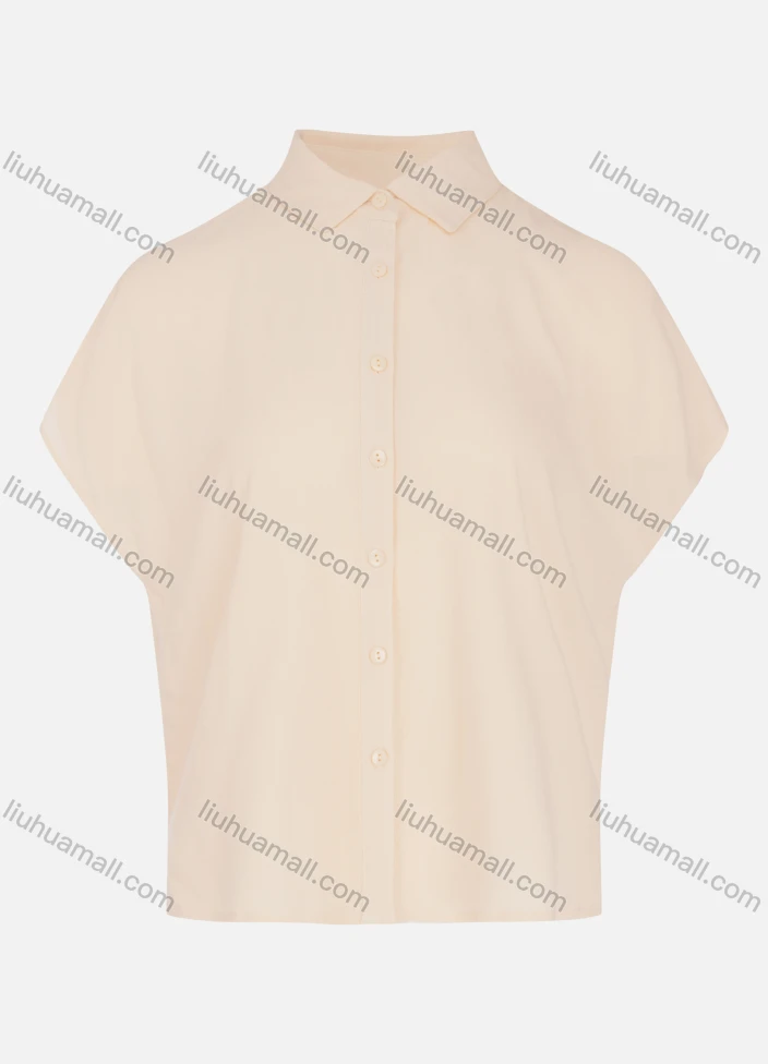 Wholesale Woman's Casual Shirt Collar Short Sleeve Button Front Plain Shirt