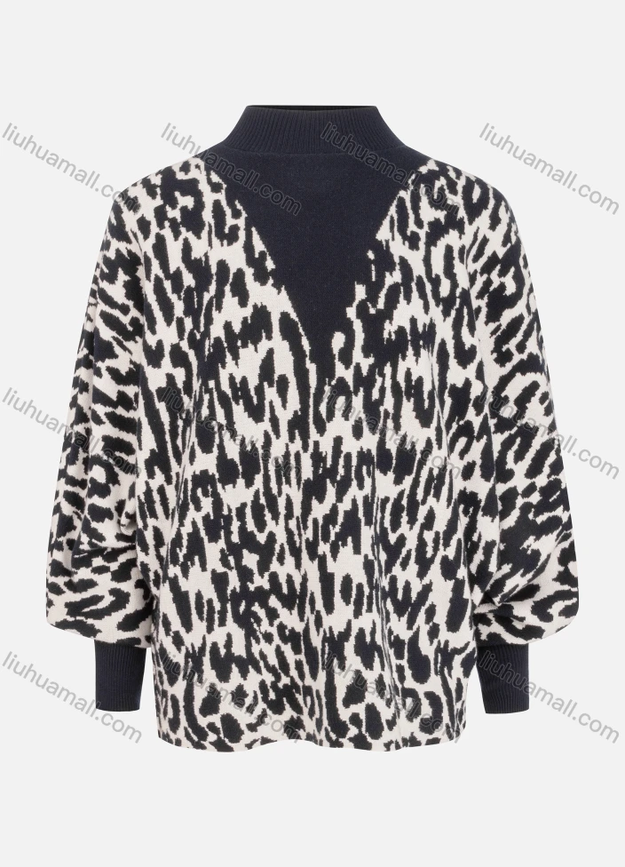 Wholesale Woman's Fashion Mock Neck Bishop Sleeve Tiger Print Pullover Sweater