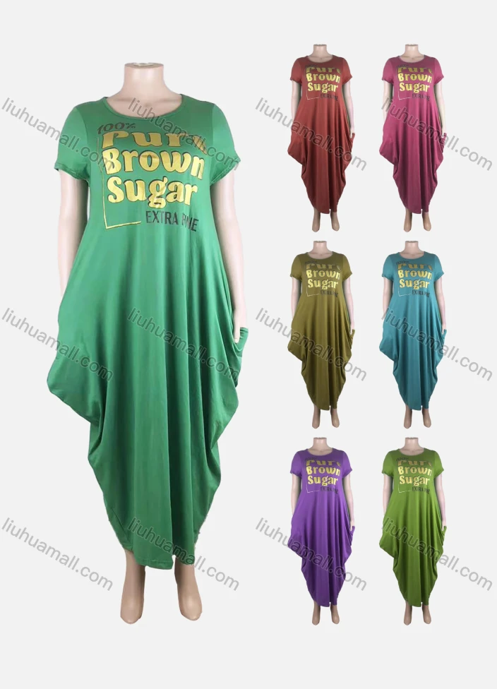 Wholesale Women's African Plus Size Crew Neck Letter Short Sleeve Patch Pocket Loose Fit Dress 8813#