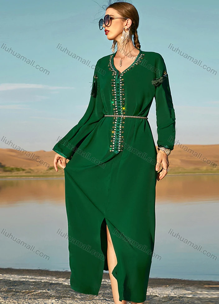 Wholesale Women's Arabic Dubai Muslim Islamic Embroidery Tassel Rhinestone Abaya Dress BA7073#