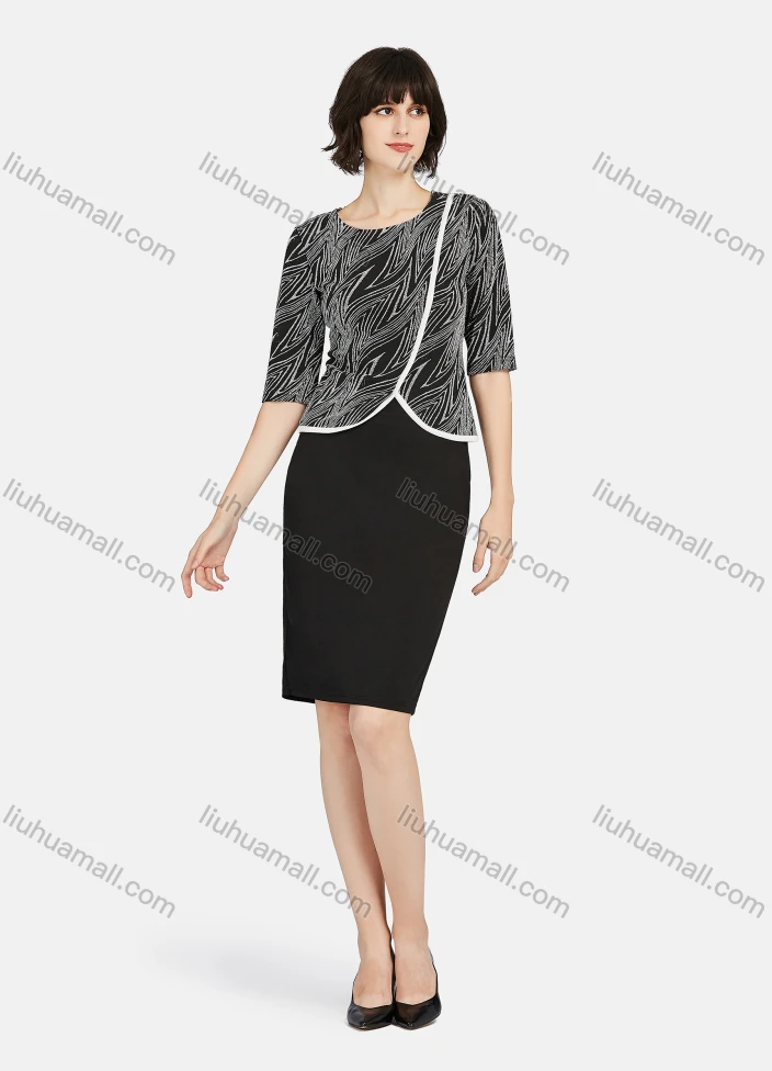 Wholesale Women's Business Half Sleeve Jacquard Pattern Embroidered Blouse & Skirt Set