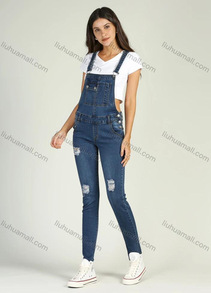 Wholesale Women's Casual Adjustable Strap Ripped Distressed Denim Overalls 3436#