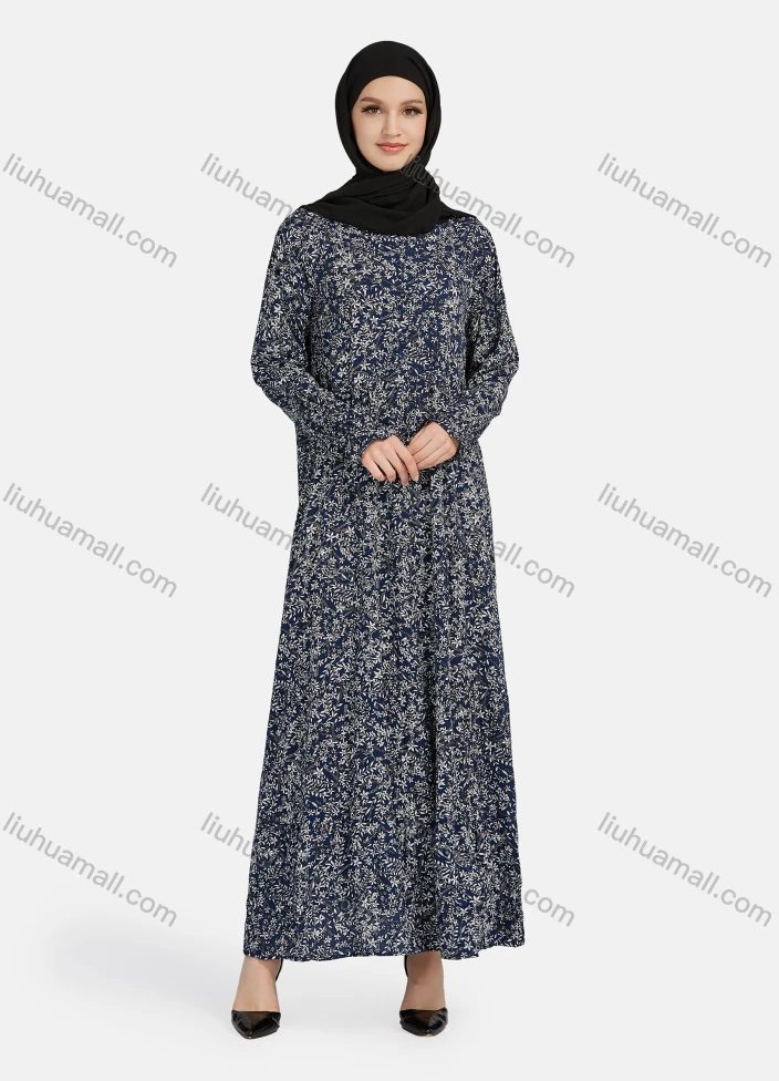 Wholesale Women's Casual Allover Print Long Sleeve Button Down Maxi Shirt Dress 1343#