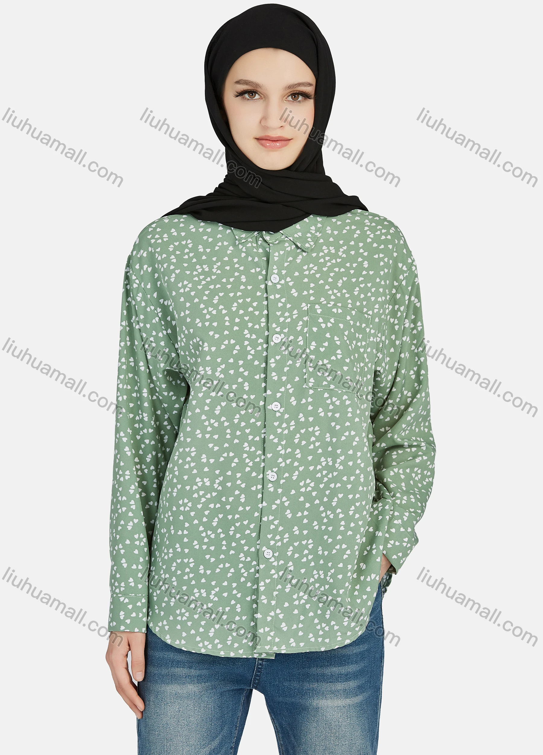 Wholesale Women's Casual Allover Print Long Sleeve Shirt 1180#