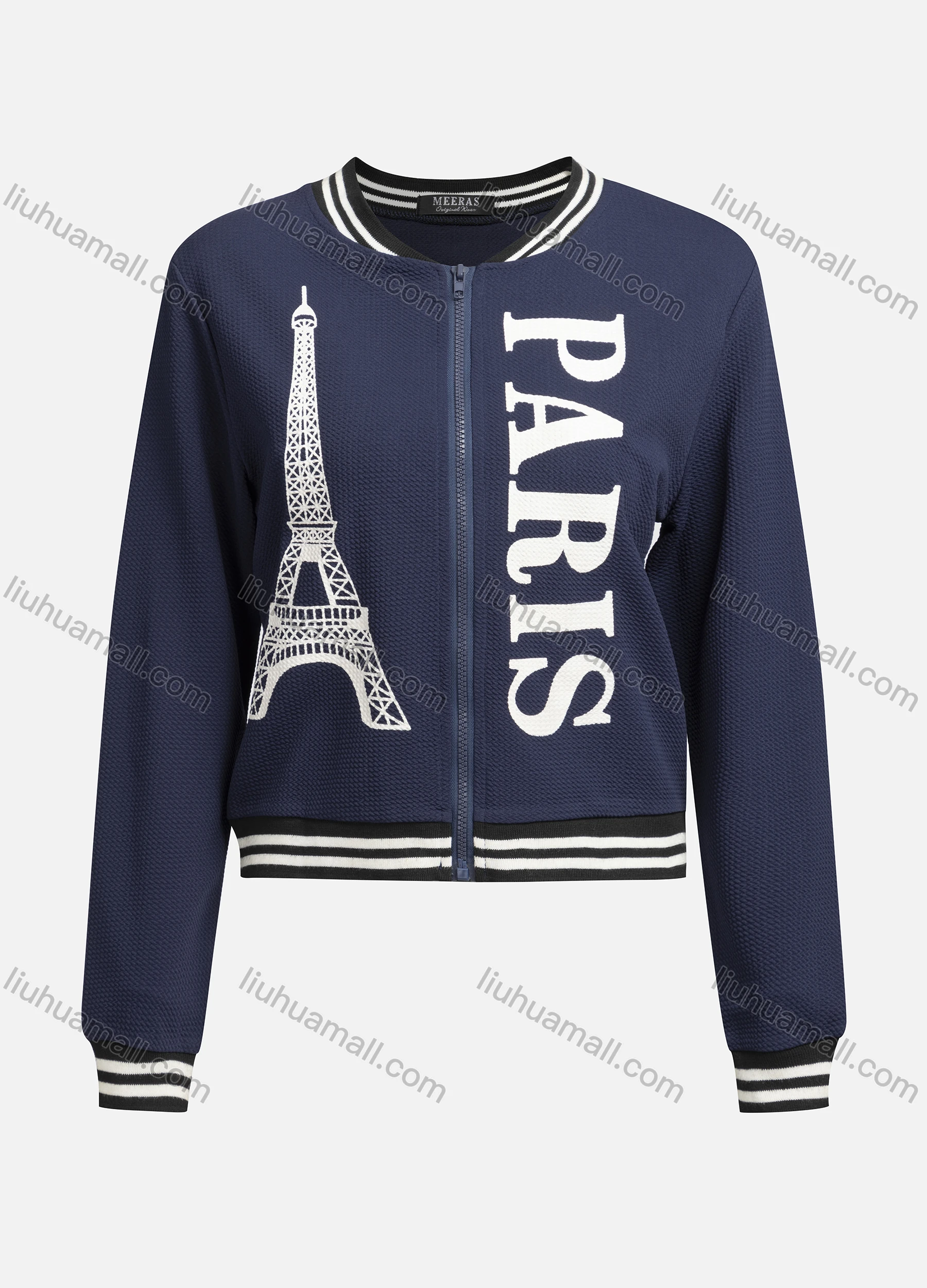 Wholesale Women's Casual Baseball Collar Long Sleeve Zip Graphic Letter Jacket 6433#