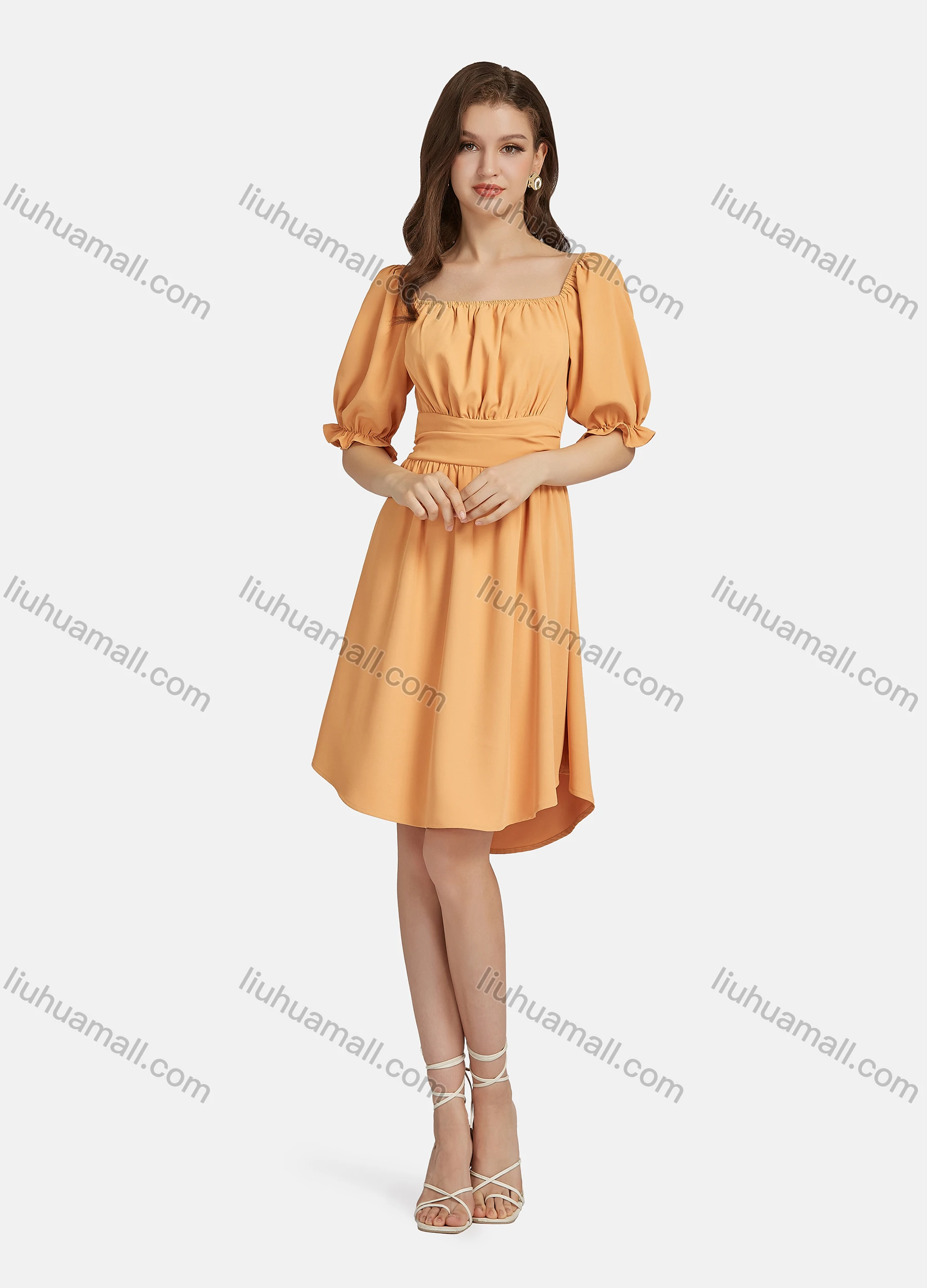 Wholesale Women's Casual Bateau Neck Poet Sleeve Peplum Curved Hem Dress 10110#