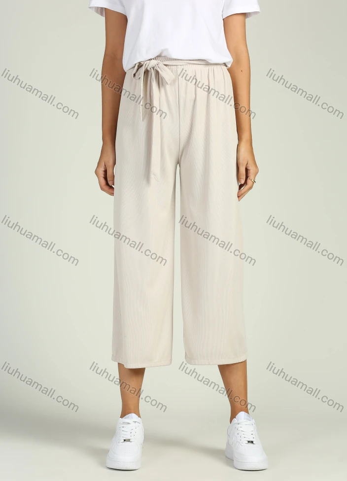 Wholesale Women's Casual Casual Wide Leg Belted Solid Cropped Pants - Liuhuamall